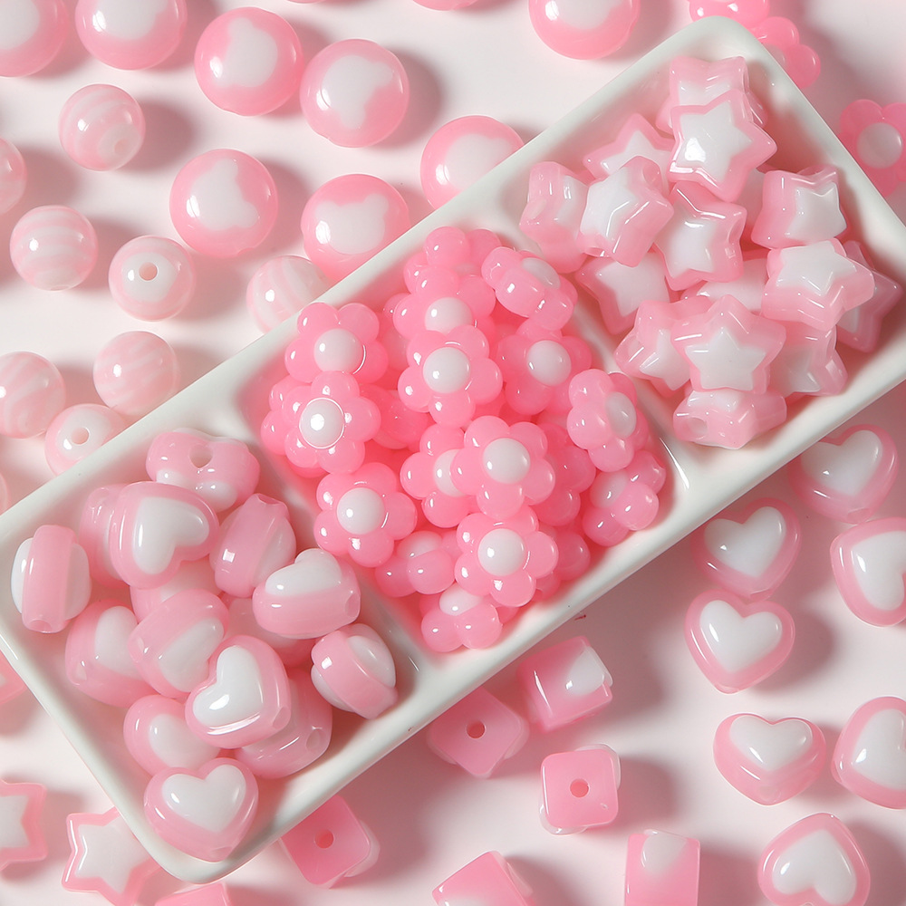 ゼリーピンクの愛の星の小さい花のストライプのビーズの中のビーズdiyの手作りのブレスレットのネックレスのアクセサリーの部品