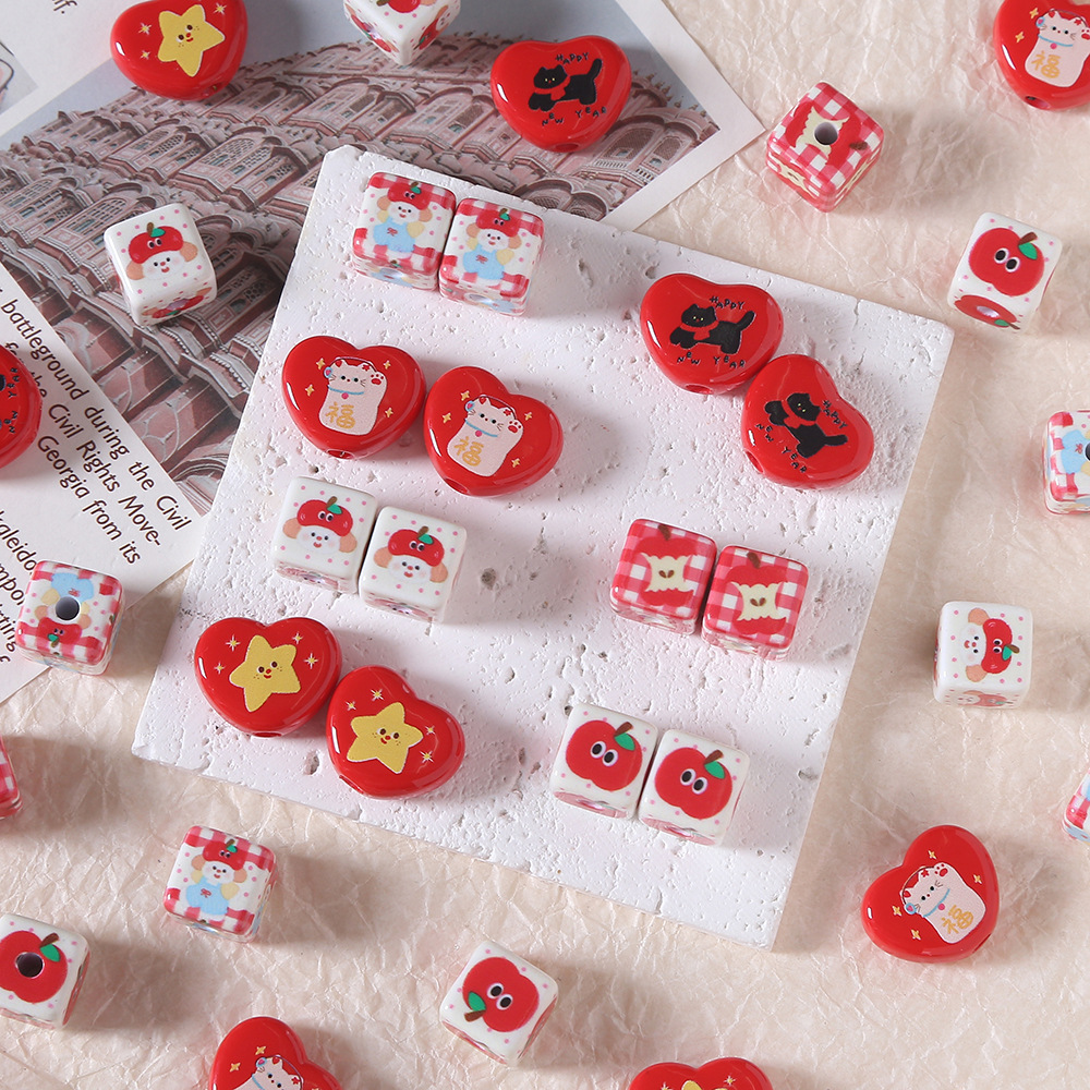 漫画のリンゴの五芒星の子犬の立体の四角の玉の愛の玉のdiyの材料のブレスレットのネックレスのアクセサリーの部品