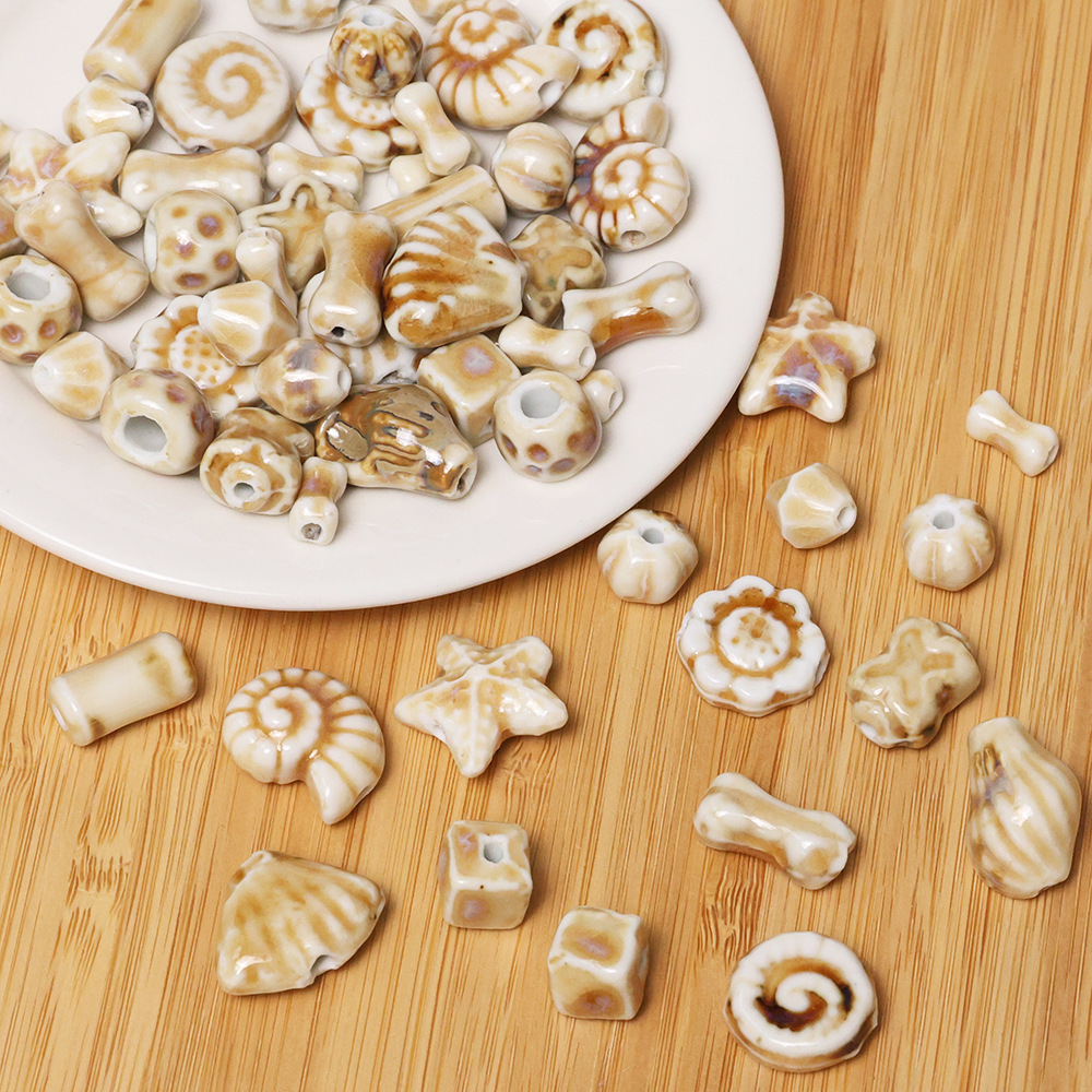 ミルク茶色異形ビーズ陶磁器手串散珠玉アクセサリー海星円管角柱アクセサリーdiyアクセサリーアクセサリーアクセサリー