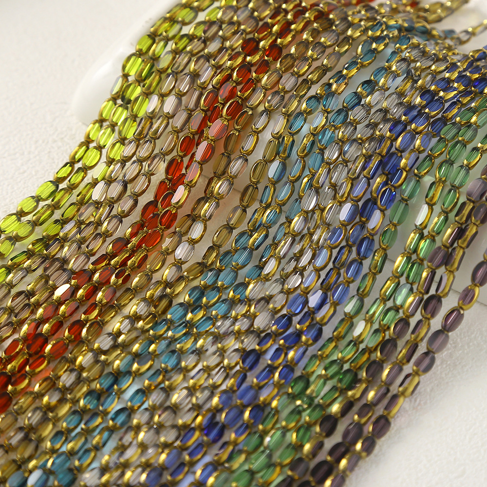 楕円ガラス切断面水晶包金辺米珠diyビーズブレスレット項目イヤリングアクセサリービーズ部品材料