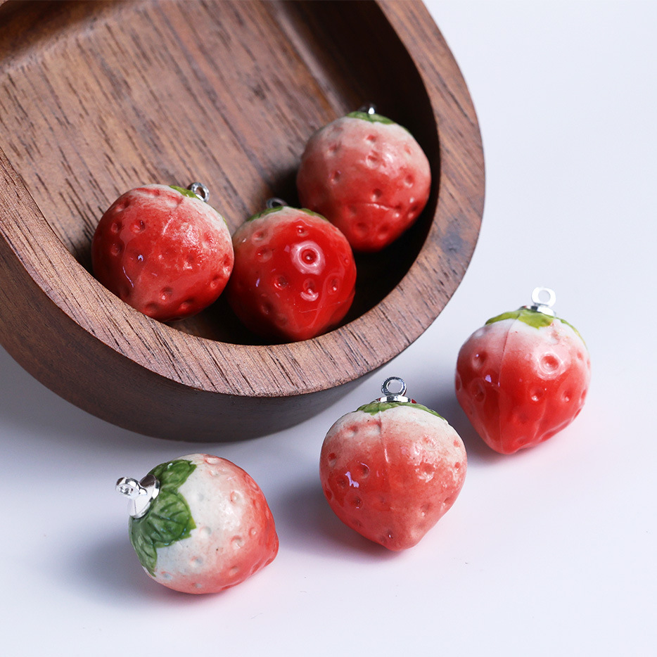 かわいい三次元シミュレーションイチゴフルーツセラミックジュエリーペンダント diy 手作りブレスレットネックレスビーズルースビーズ