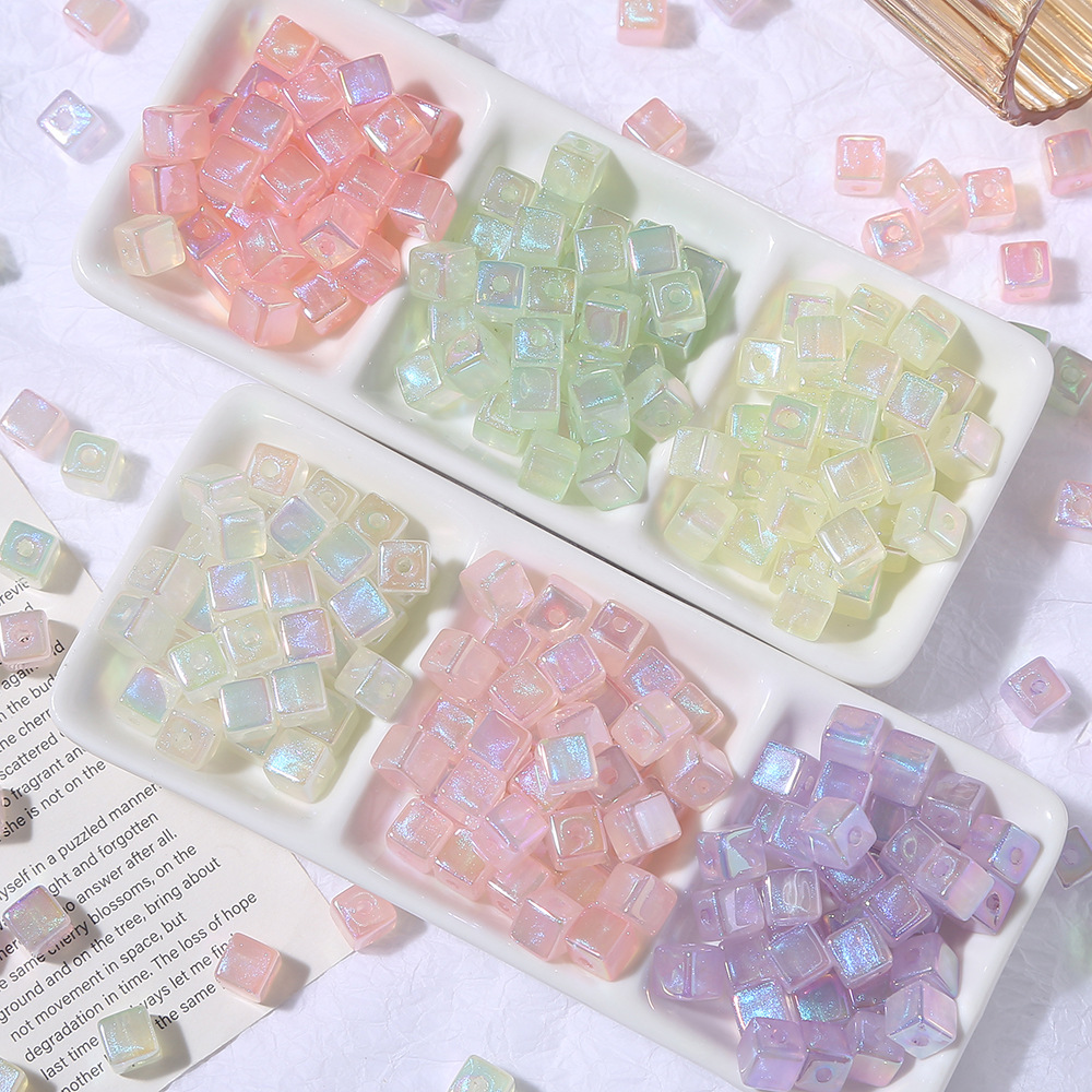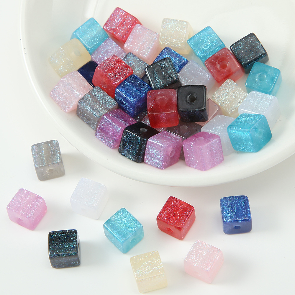 メーカー直販8mm正方形の細いフラッシュ樹脂の方糖玉diyブレスレットのネックレスのビーズの材料の卸売り