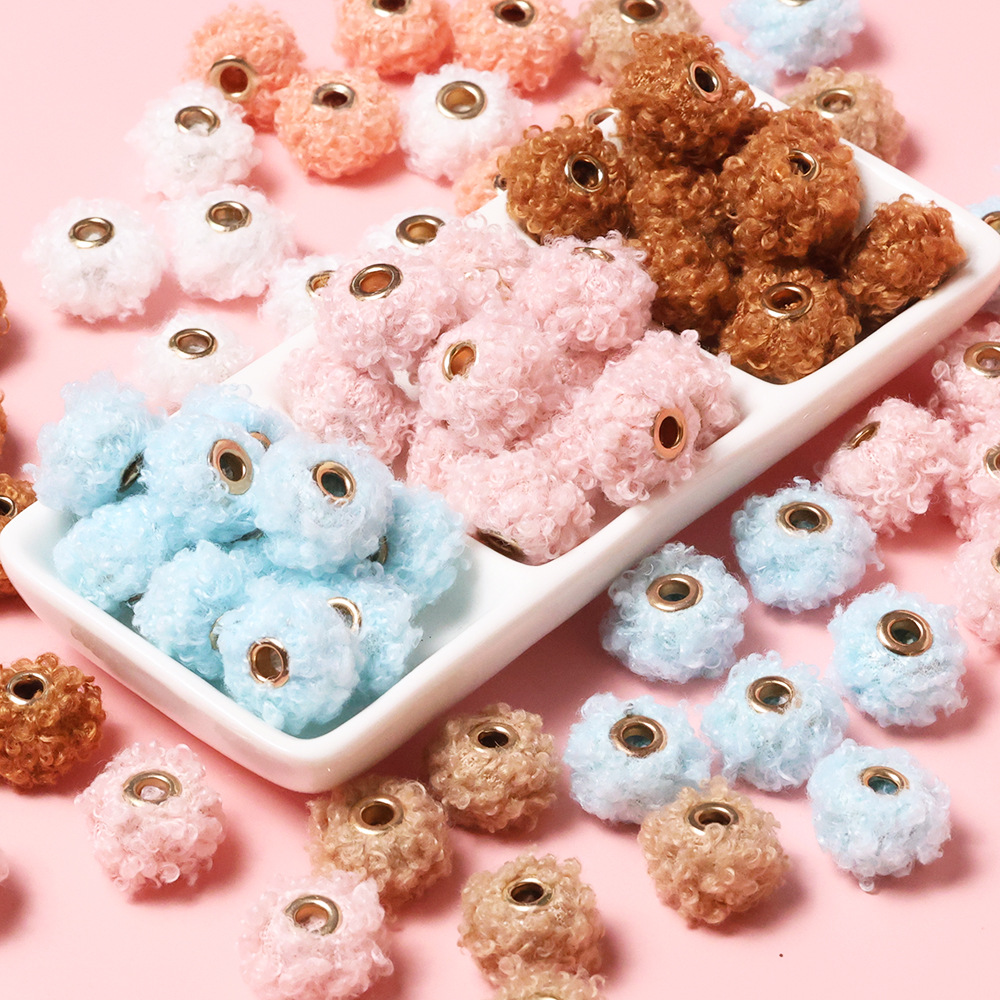 テディパイル巻き毛大穴ビーズカラーパイル直穴ビーズdiy散珠携帯チェーンネックレス部品