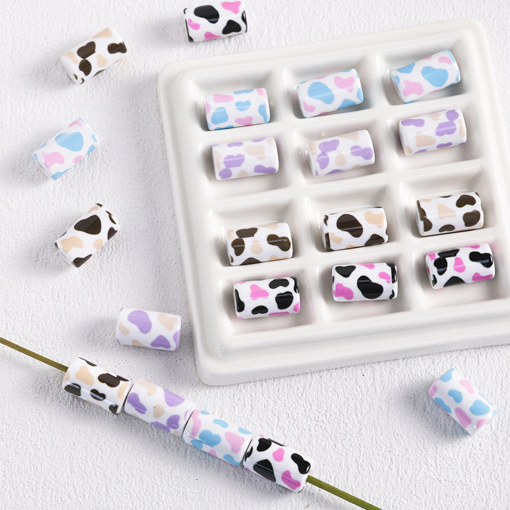 アクリルかわいいクリームの斑点のまっすぐな穴の円柱diyのブレスレットのネックレスの携帯電話のチェーンの包みの材料の部品の散珠