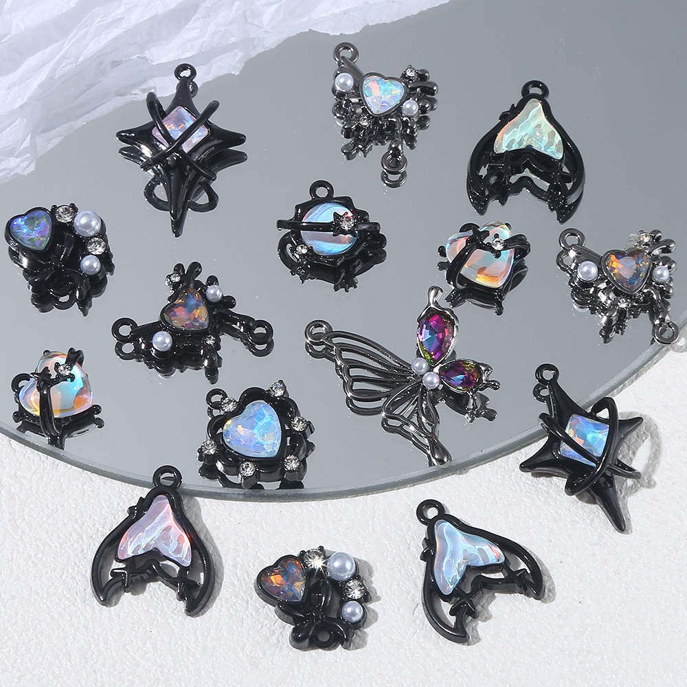 Diyダークダイヤモンド合金蝶愛月ペンダントアクセサリーネックレス手作りビーズ材料卸売り