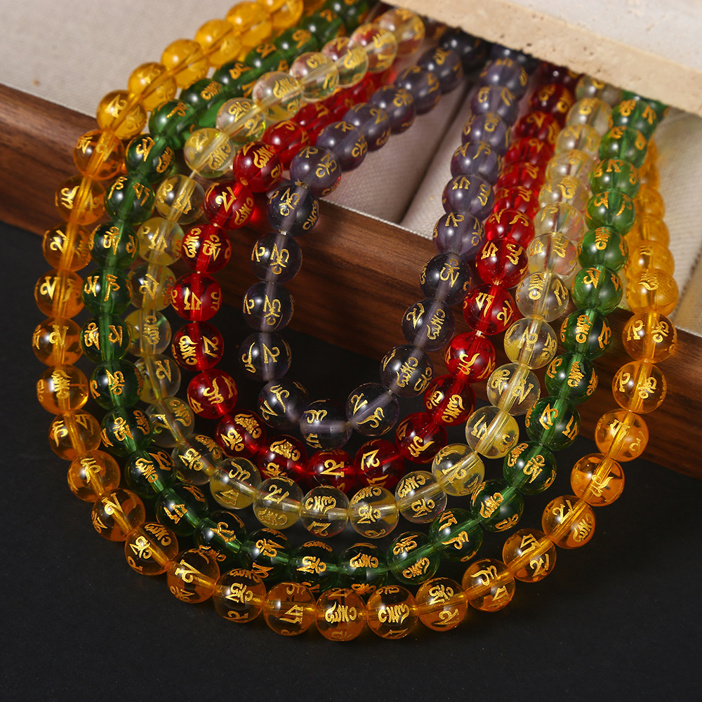六字の箴言は金にアイロンをかけて字の瑠璃の玉を彫ります。