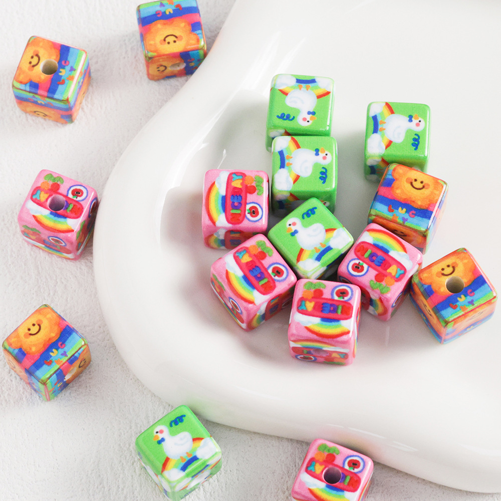 日韓アクリルアニメかわいい虹熊ブロックdiyビーズ材料ブレスレットネックレス携帯チェーン部品