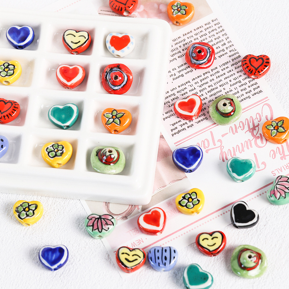 新しい色の陶磁器の愛のかわいい手描きのビーズdiyの手作りの材料のブレスレットのネックレスのアクセサリーのビーズ