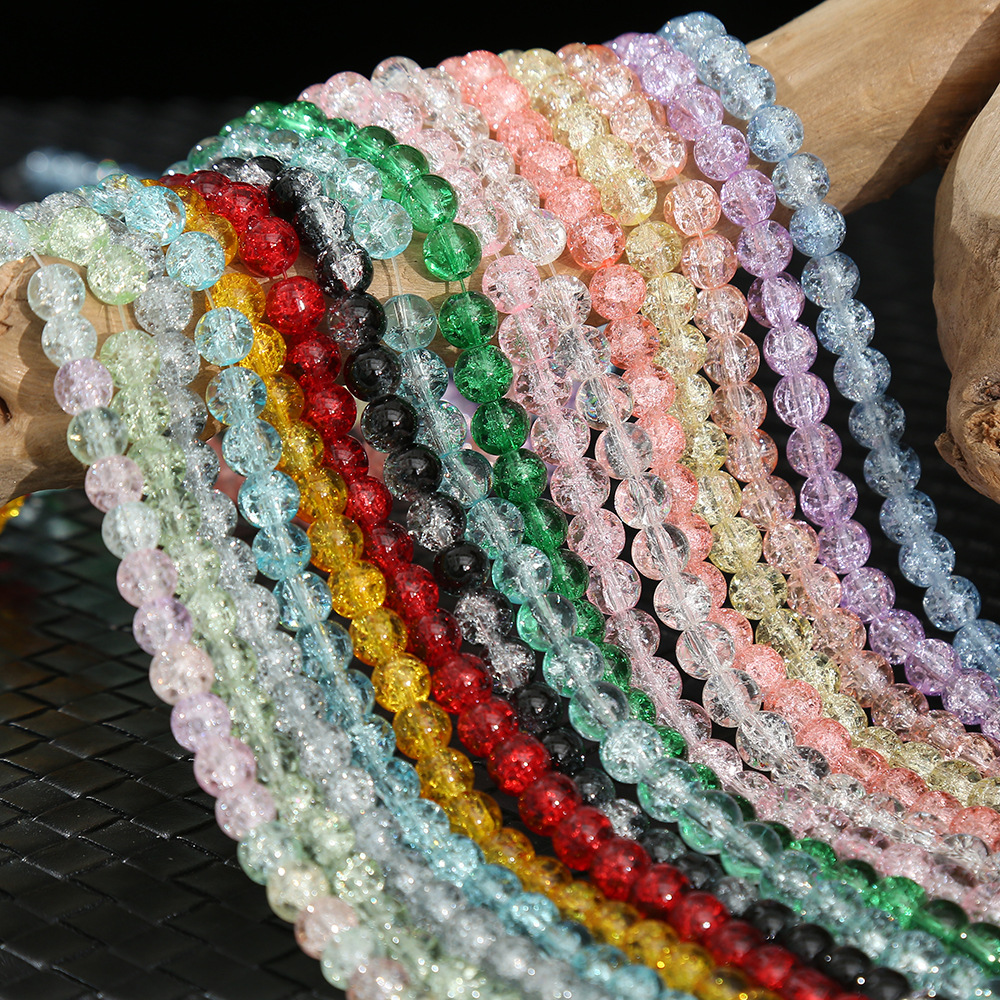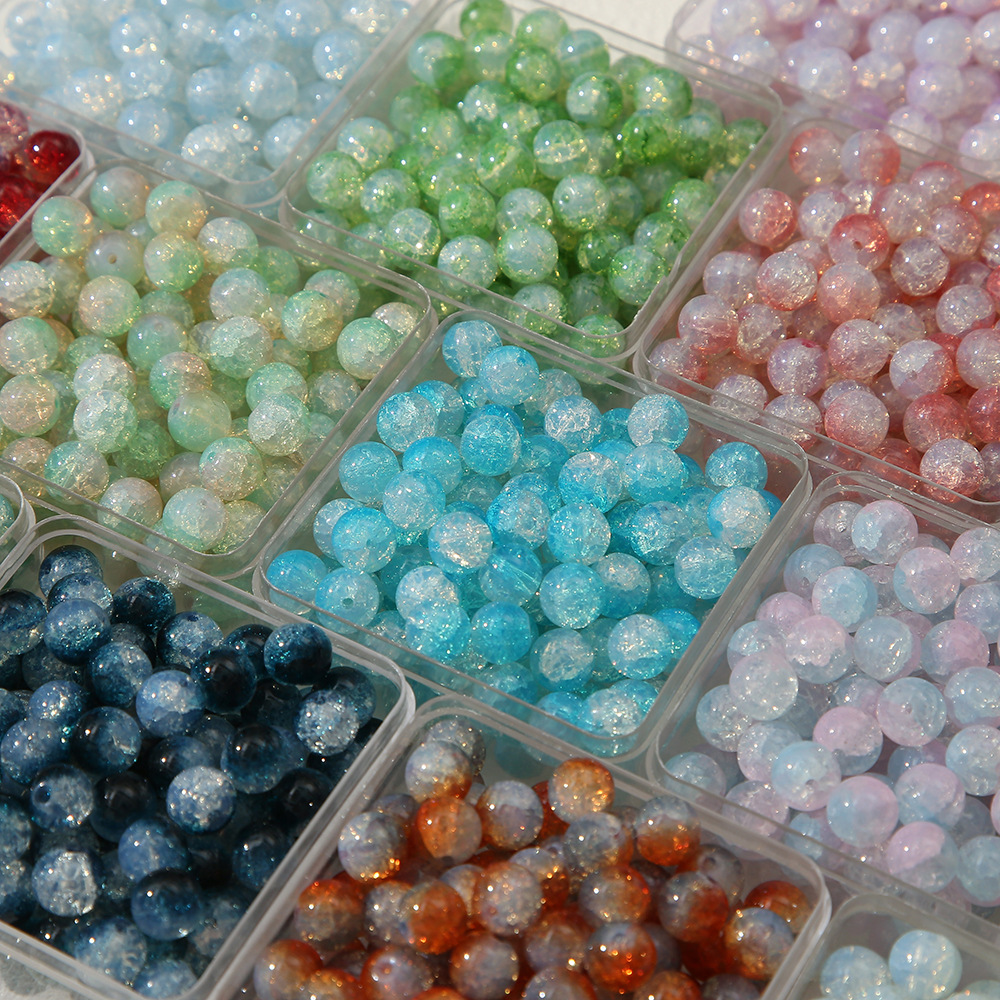 新しい手作り爆裂散珠8mm透明氷裂瑠璃珠ガラス手串部品材料ビーズ卸売り