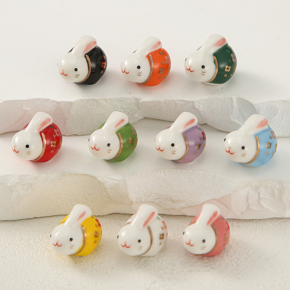 漫画かわいいウサギ陶器ビーズdiy手作りアクセサリーブレスレットペンダントアクセサリー材料セラミックペイントビーズ