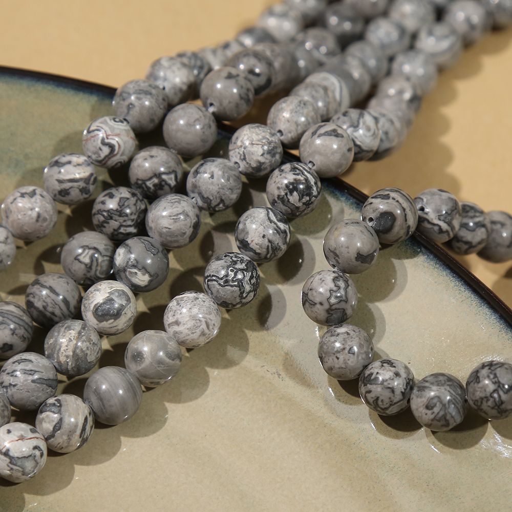 天然石ボール地球石散珠直穴手作りdiyブレスレットネックレス個性雑石黒系部品