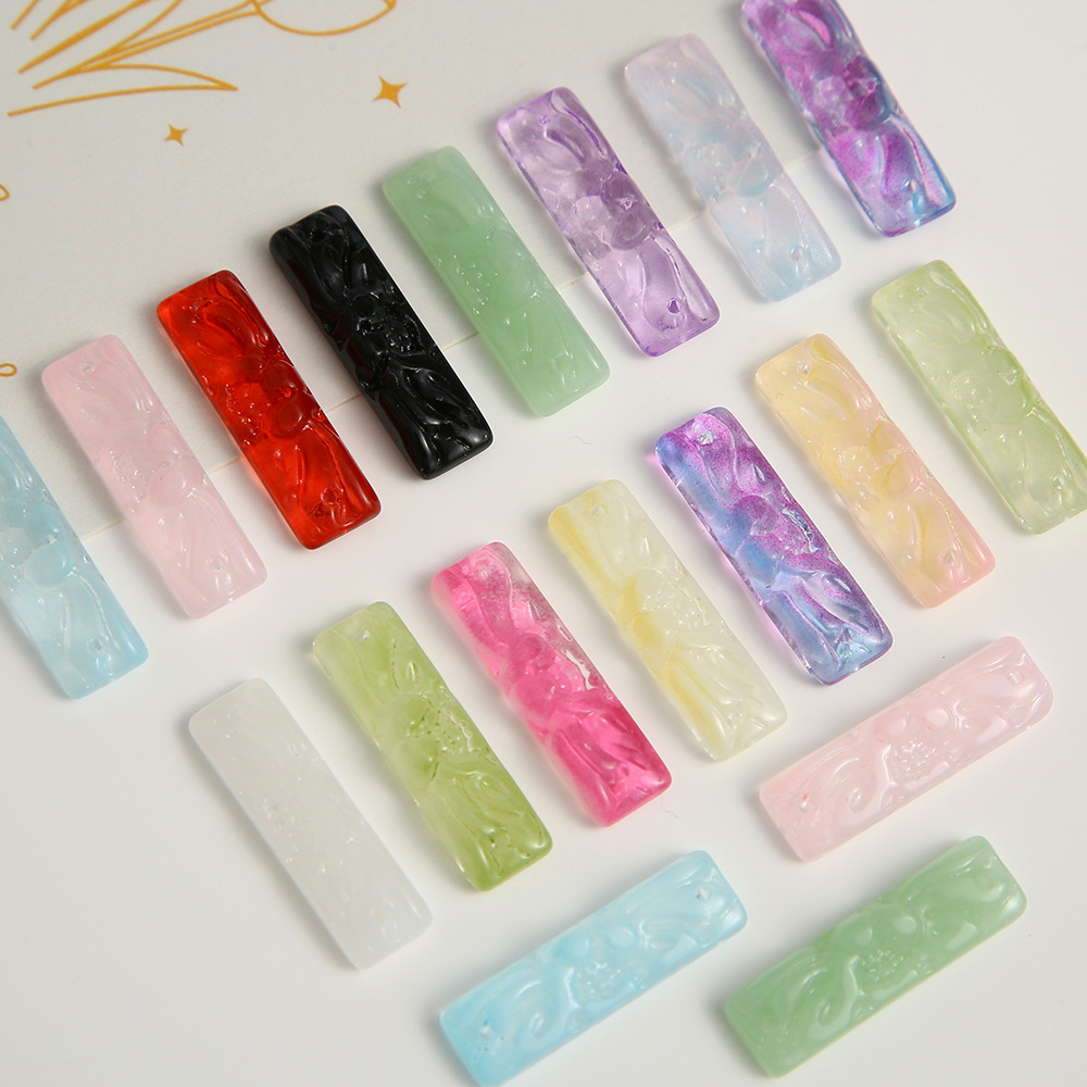 レリーフ花タグ瑠璃ピアスペンダントダブル穴ガラスビーズ手作りdiyアクセサリーブレスレットネックレスアクセサリー