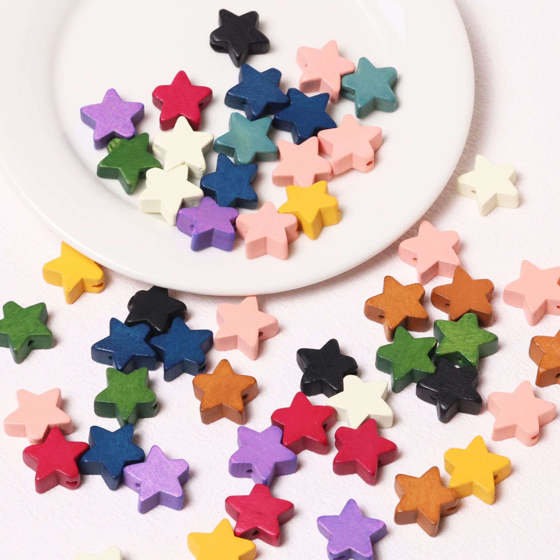 ファッション創意木製五角星ビーズカラー星直穴隔珠diy散珠ブレスレットネックレス部品