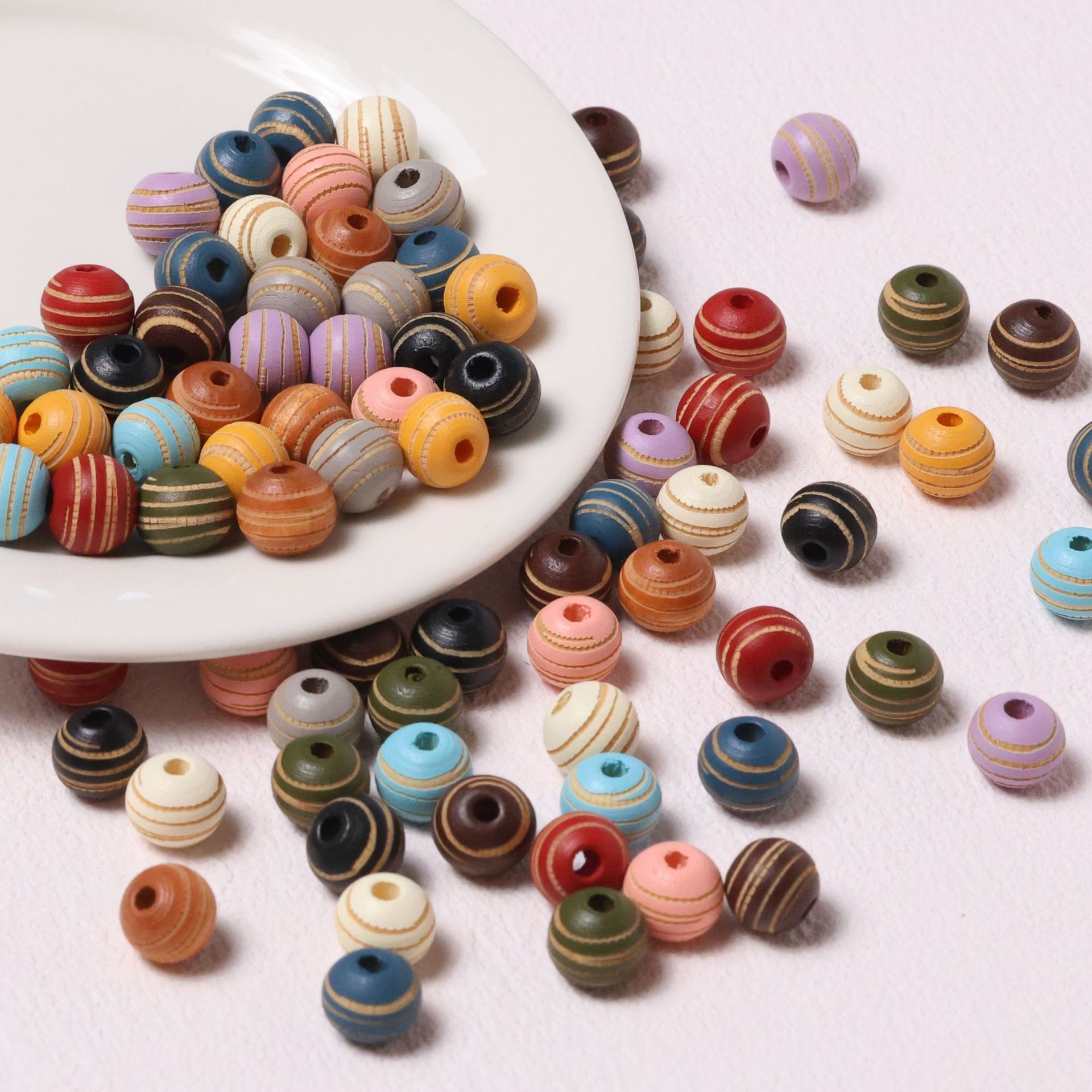 新しいアイデア彫刻模様の木製ビーズビーズビーズdiyアクセサリーブレスレットネックレス材料卸売り