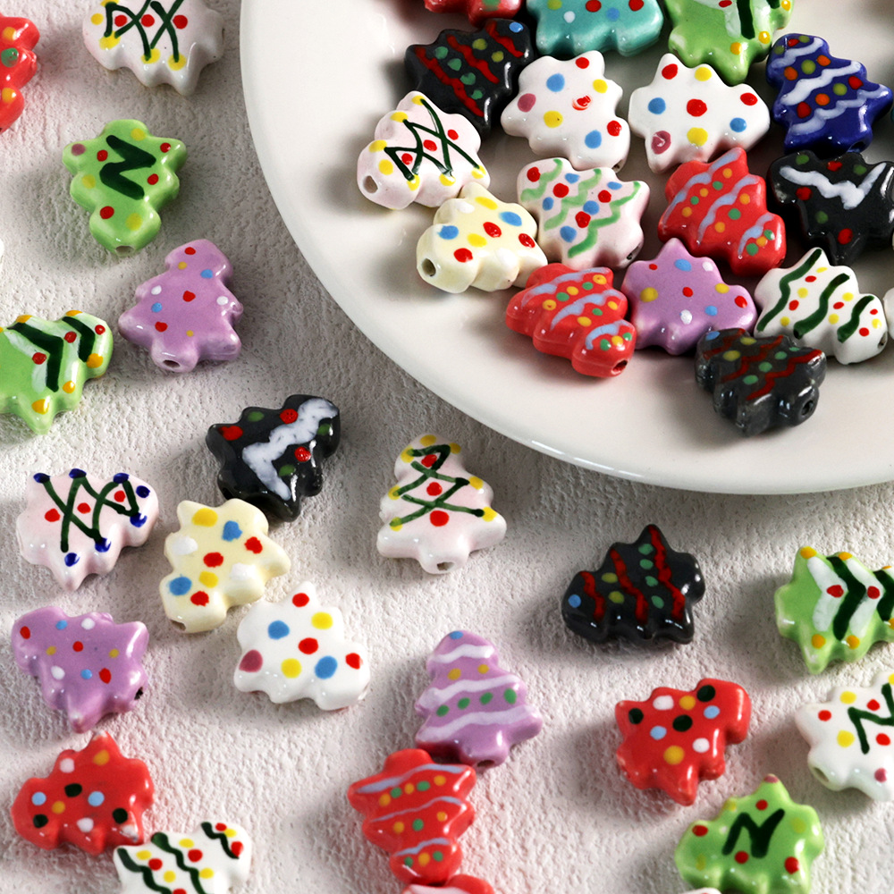 夏の新型かわいい手描き陶磁器ビーズ漫画クリスマスツリービーズDIYアクセサリーブレスレットネックレス部品材料