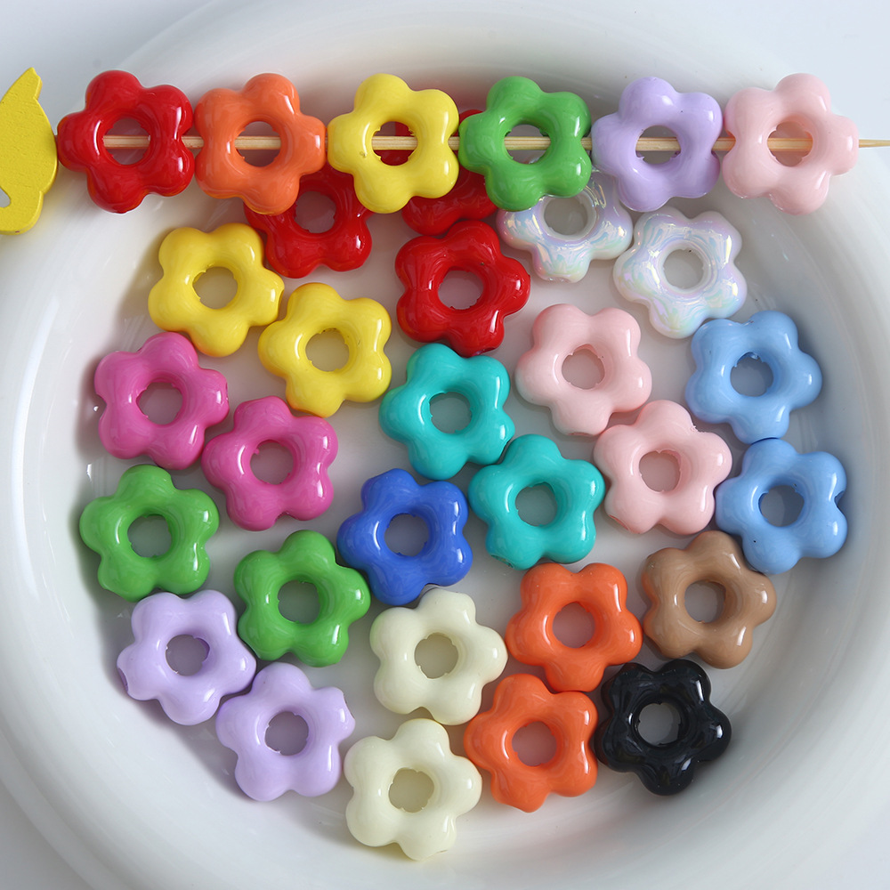 DIY カラーアクリルフラワービーズルースビーズ diy 5 花びらフラワービーズ携帯電話チェーンジュエリーアクセサリー材料