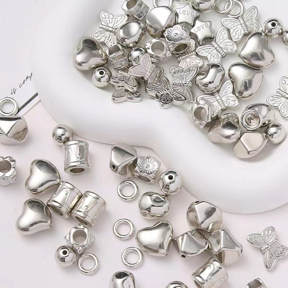 レトロY2KシルバーバタフライハートペンダントDIY手作りビーズネックレスブレスレット材料アクセサリービーズ在庫あり