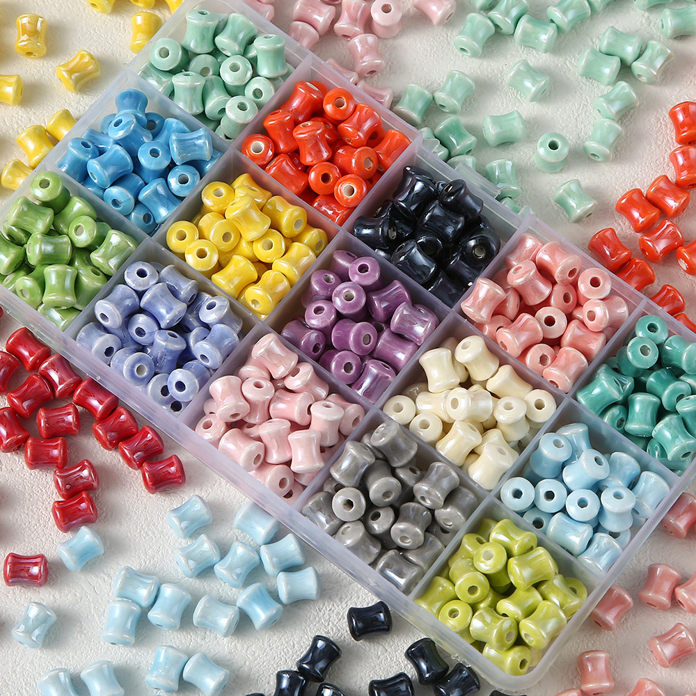 新中国式陶磁器竹節散珠クリーム色ビーズ手作りdiy編みブレスレットネックレスアクセサリーアクセサリー