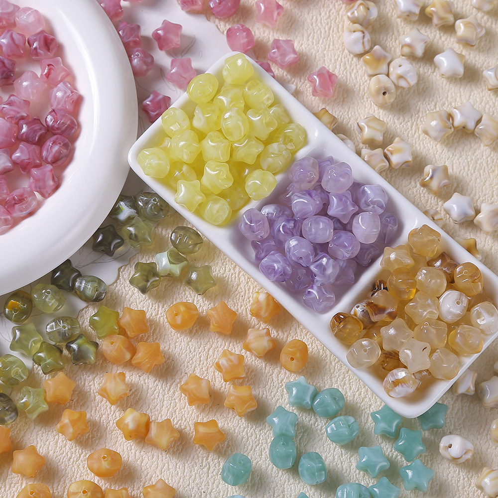 12mm五芒星ぼかし染多角形樹脂直孔散珠古風DIY手作り手串ネックレスビーズ材料