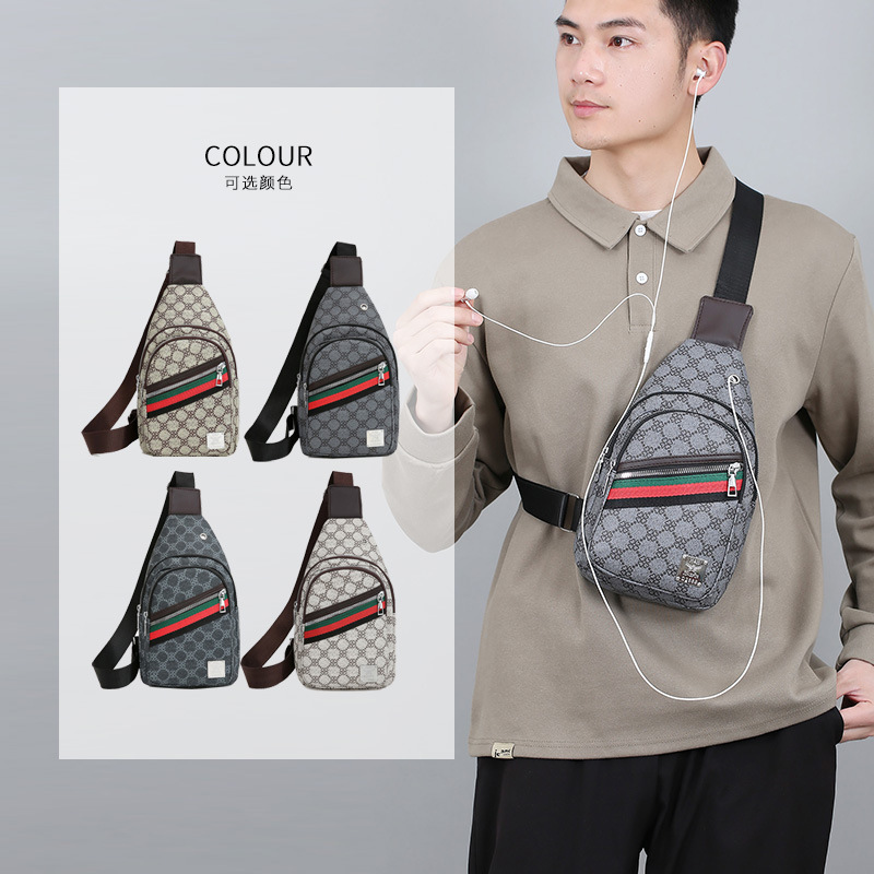 新しい軽量メンズチェストバッグ、ストライププリントウエストバッグ、メンズカジュアル携帯電話収納多機能スポーツクロスボディバッグ
