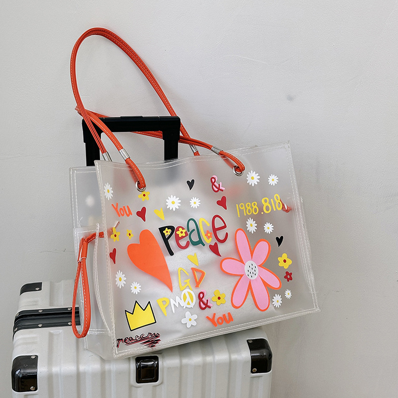 2025年流行のかわいいプリント柄の痛バッグ、女性用大容量ゼリーバッグ、ショルダートートバッグ、多用途カジュアル脇の下バッグ