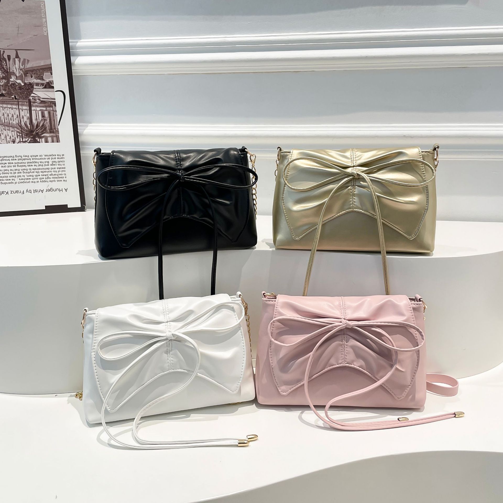 高級感のあるトレンドファッションのリボンプリーツバッグ2025年新作バッグ女性用小さめスクエアバッグ個性的なデザインの脇の下バッグ
