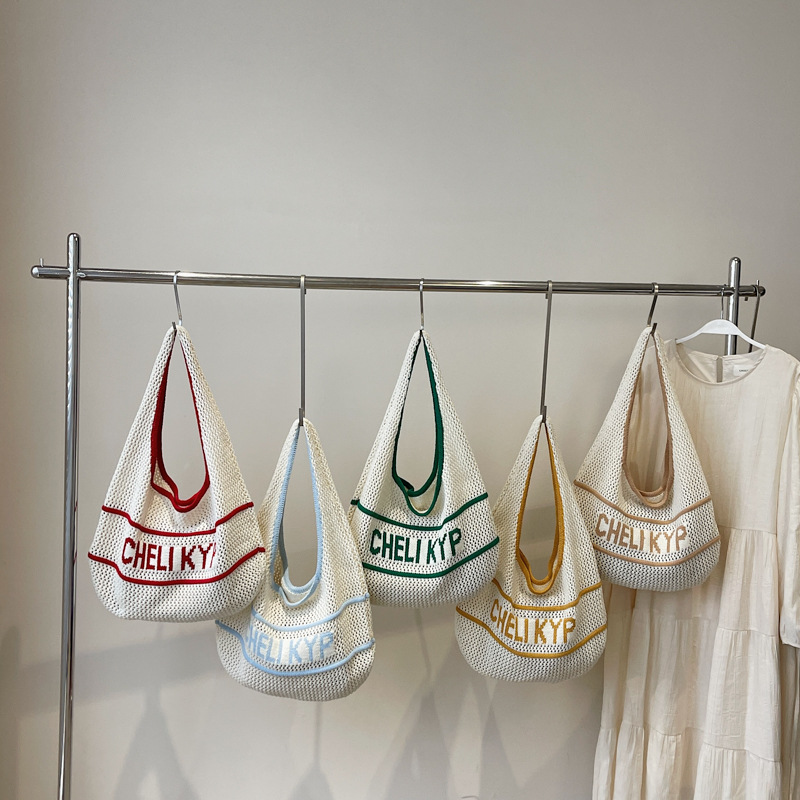 女性のための織バッグ 2025 夏の新しい中空デザインわらバッグ海辺遊び通勤ニットショルダー脇の下バッグ