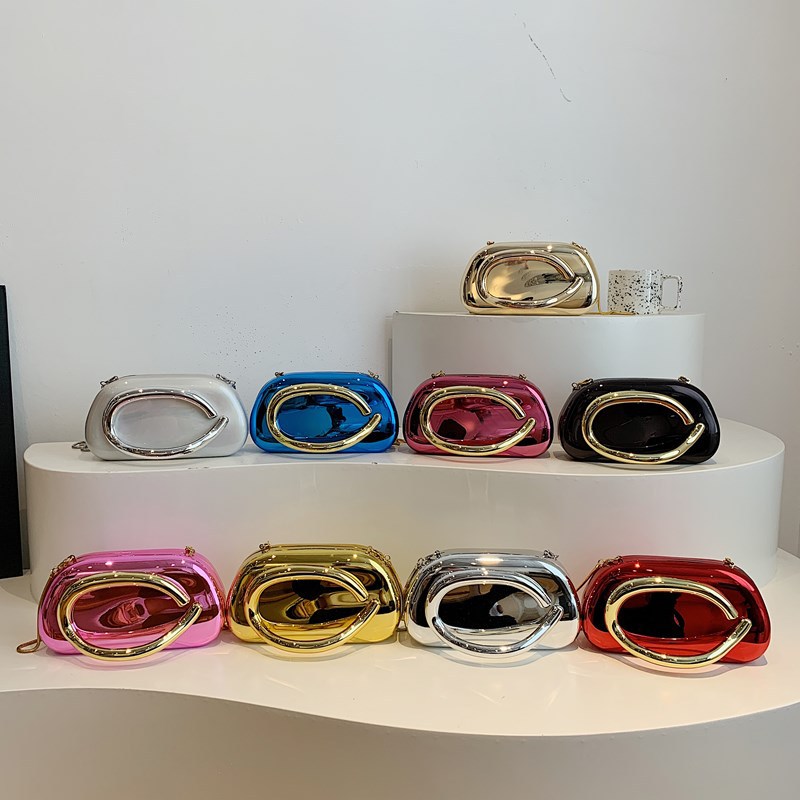 2025年新作 レトロアクリル製イブニングバッグ 欧米風トレンド ウェディング ニッチハンドバッグ メタルショルダー/クロスボディバッグ