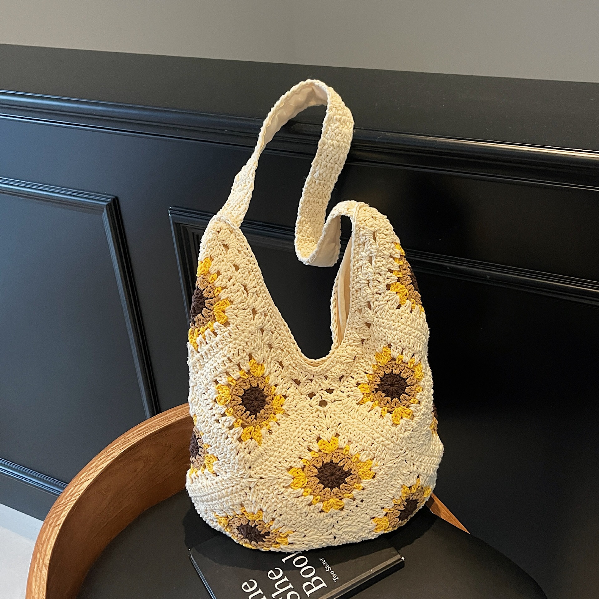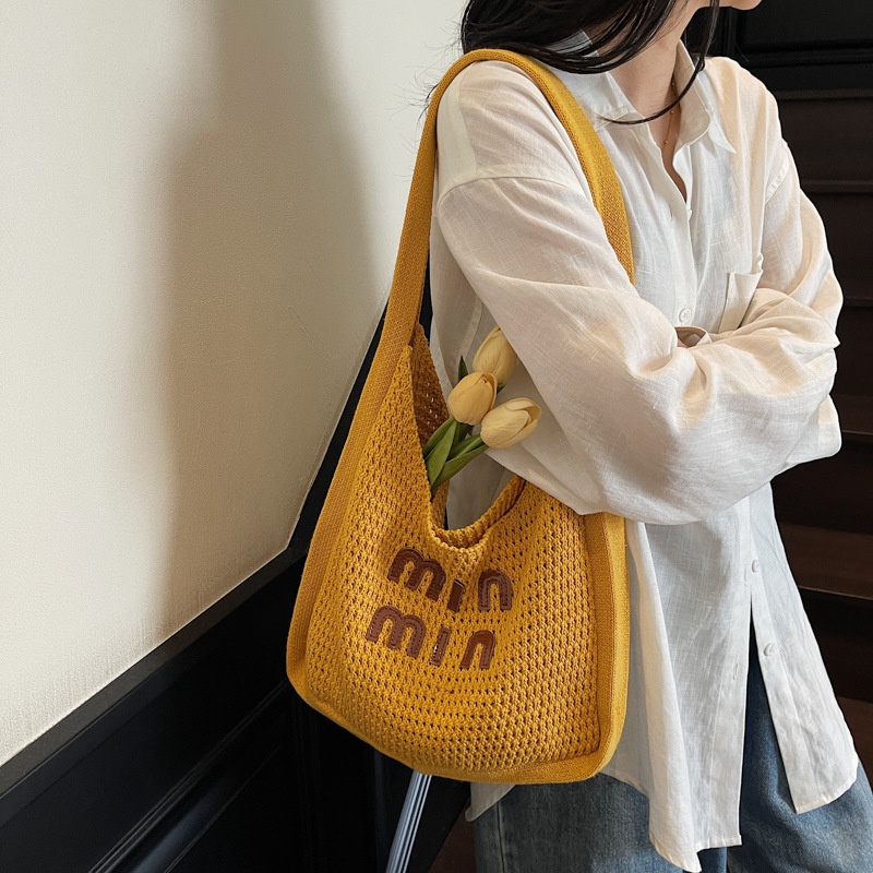 おしゃれなニット編みバッグ、女性向け2025年新作トレンドファッション、個性的なショルダーバッグ/脇の下バッグ