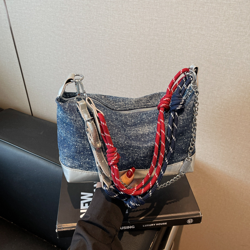2025新型レトロデニムバッグ女性高級感小衆斜めショルダーバッグ