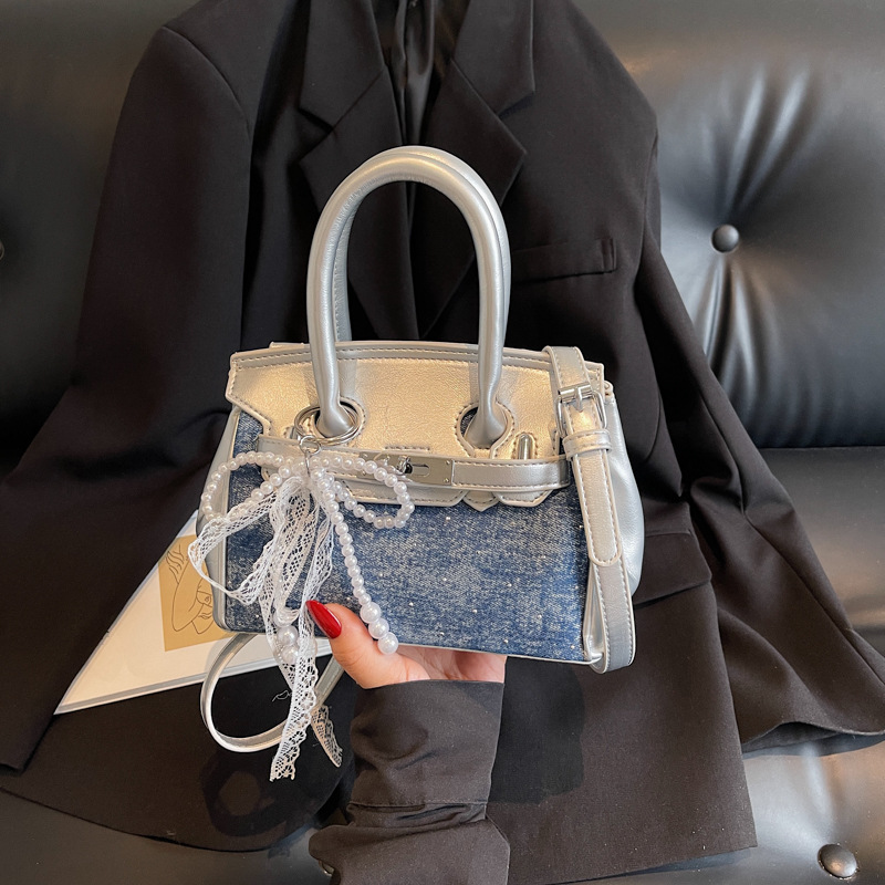 2025 新レトロデニムケリーバッグ女性のハイエンド西洋スタイルニッチハンドバッグ通勤ショルダークロスボディバッグ