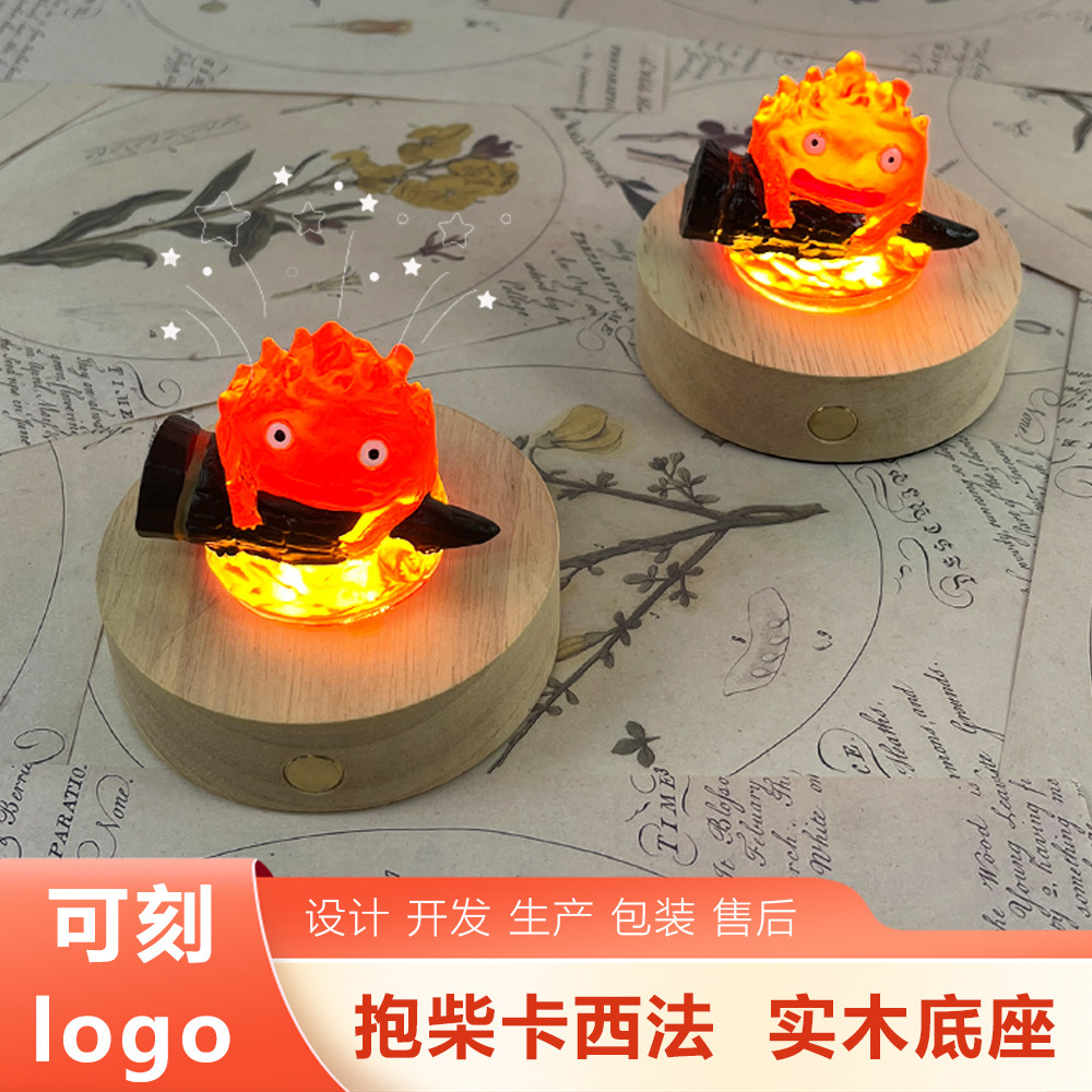 国境を越えた人気のカシファの炎はリモコンでライトが点灯し、かわいい常夜灯〜ハウルの動く城無垢材