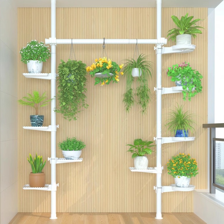 天に立って床に落ちた花棚の窓の植木鉢の置物棚の室内のベランダは穴を開けないで植木鉢のハンガーを収納します。