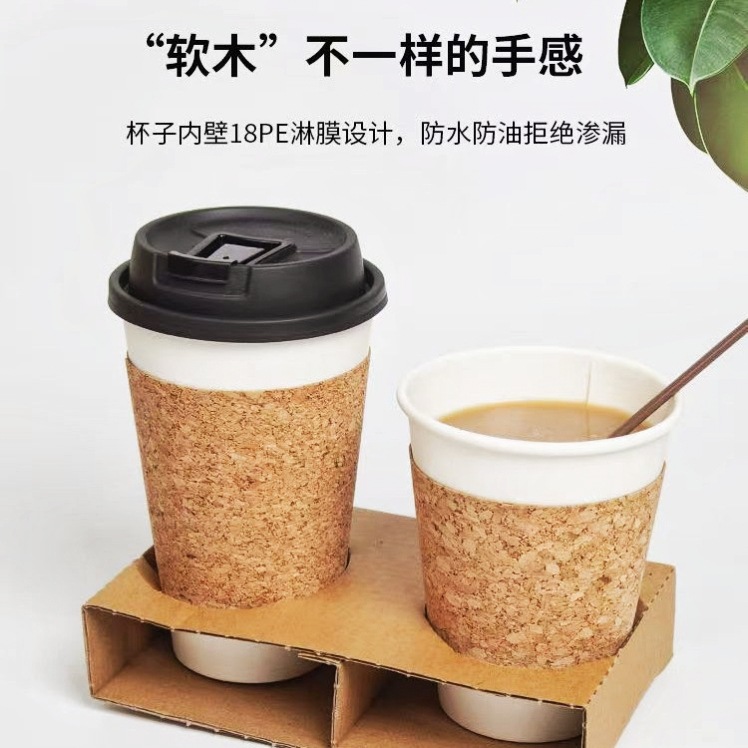 コルクカップ、使い捨てコーヒーカップ、ミルクティーペーパーカップ、蓋付き白紙、ポータブルテイクアウト包装カップ、さまざまなサイズでカスタマイズ可能