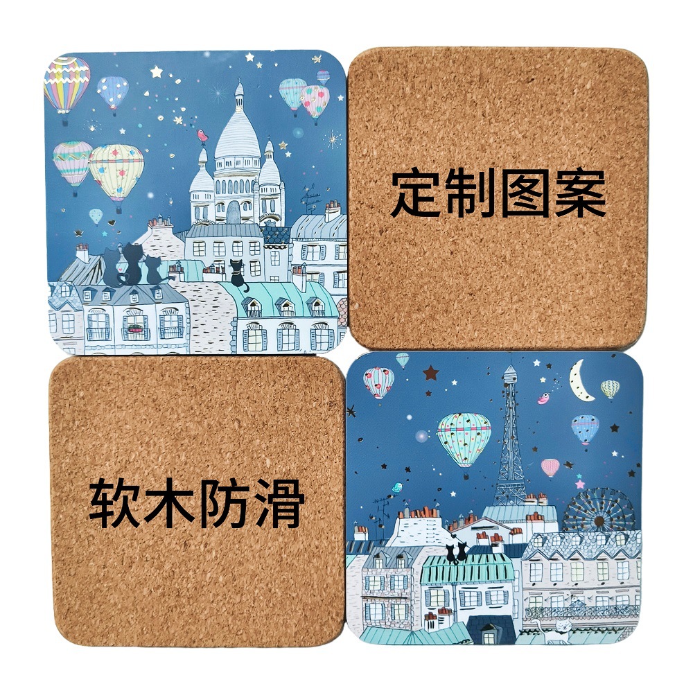 カスタマイズされたコルク密度ボードコースター熱転写シルクスクリーン印刷コースター印刷可能なロゴMDFコースター断熱プレースマット卸売