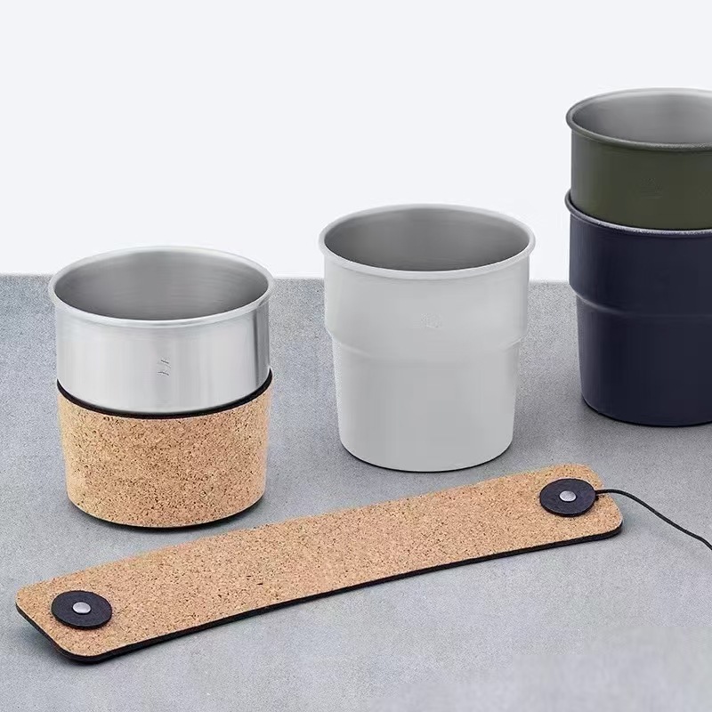 コルクレザーカップカバー、調節可能なステンレス鋼コーヒーカップカバー、手持ちレザーカバー、断熱、火傷防止ソフトレザーカップカバー、在庫あり