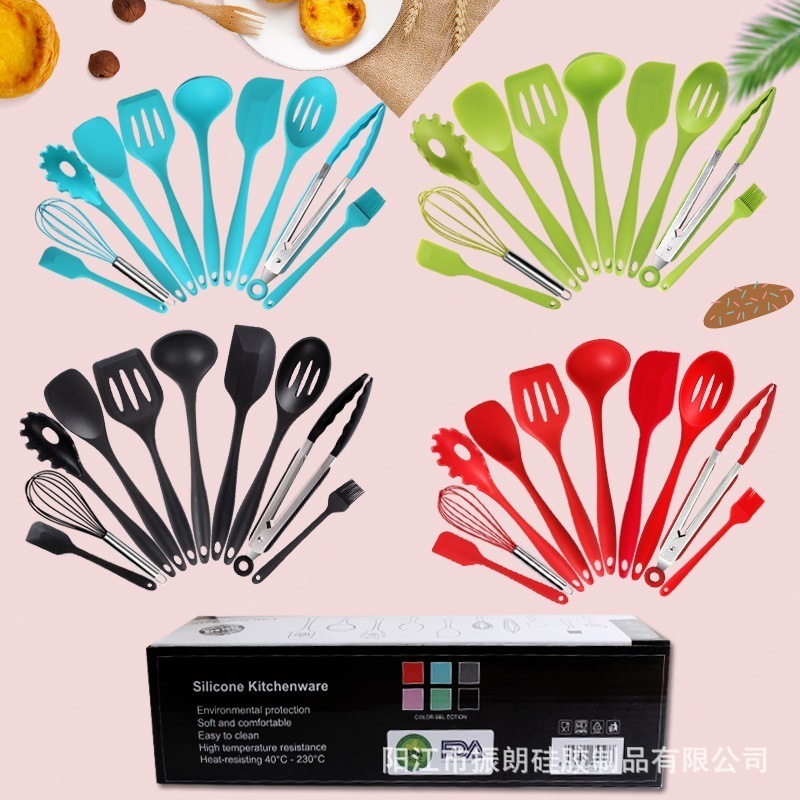 シリカゲル調理器具10点セット調理シャベルスプーンセットカラーボックス包装炒め料理シャベルキッチンツールスポット卸売り