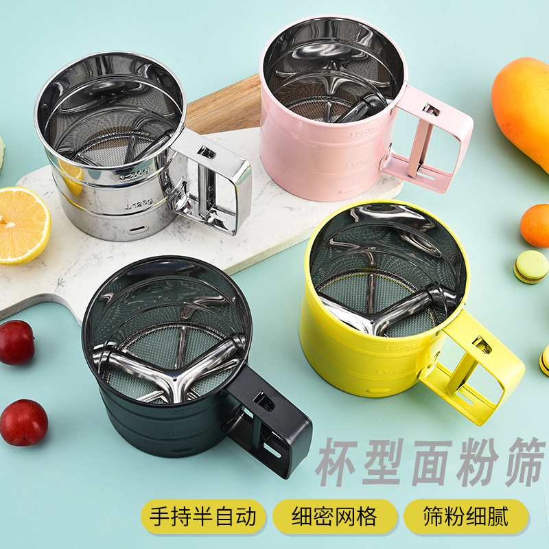 小麦粉フィルター半自動手持ち小麦粉ふるい二重網ふるい家庭用焙煎ツールスプーン粉漏れ網ふるい