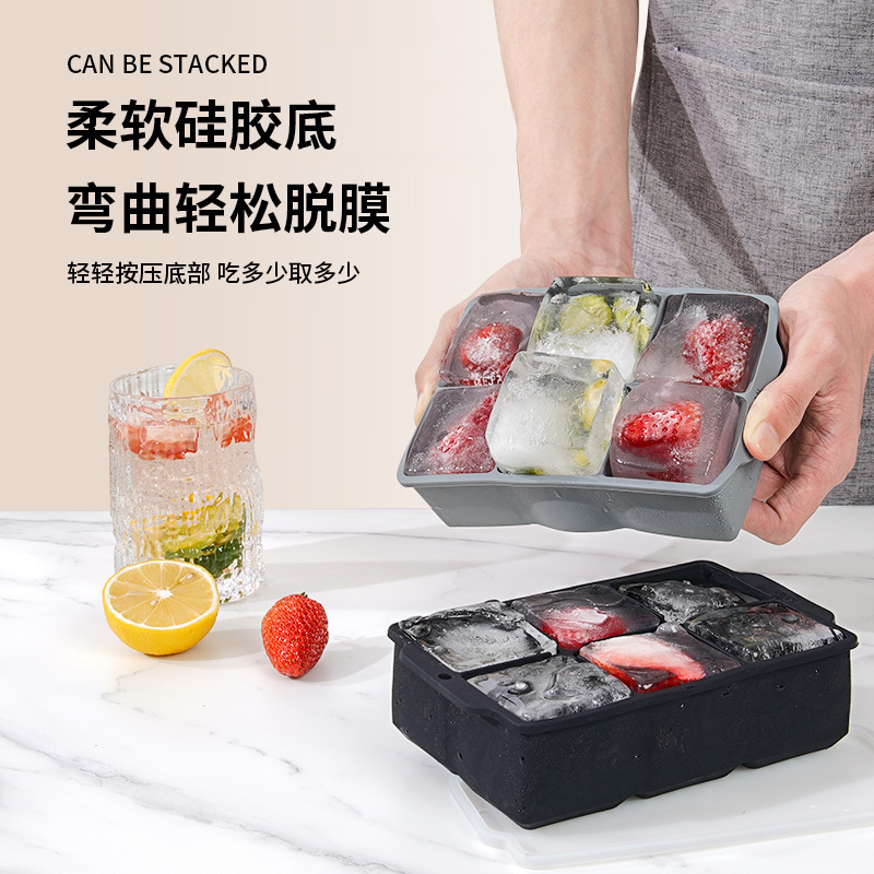 大型シリコン製製氷皿 6 ピースアイスキューブ型ウイスキー製氷ボックス家庭用取り外しが簡単なシリコン製製氷皿絞り製氷皿
