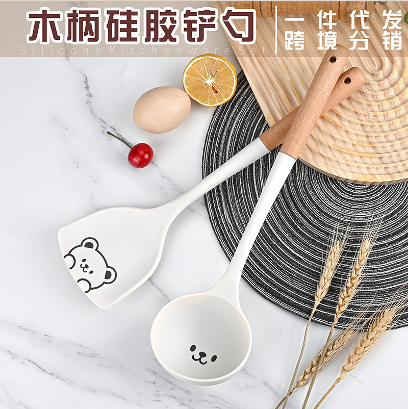 木の柄のシリカゲルのシャベルのセットの台所の料理の鍋のシャベルのスプーンの高温の炒め物のシャベルのシリカゲルの熊のスプーンのシャベル