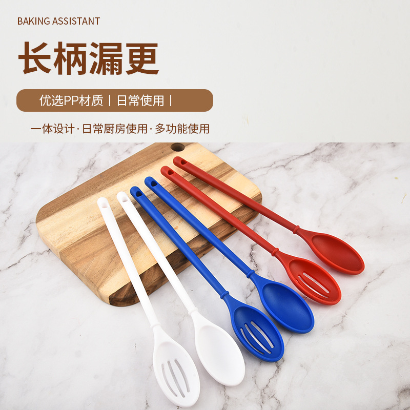 プラスチックの長い柄のサラダのスプーンのミルクティーのコーヒーはスプーンのサラダをかき混ぜます。