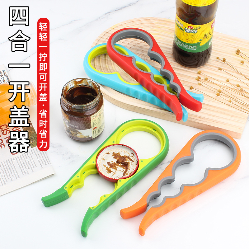 四合一の栓抜きTPRソフトゴム缶詰の蓋開け器多機能滑り止めの缶開け器の蓋をねじって蓋をします。