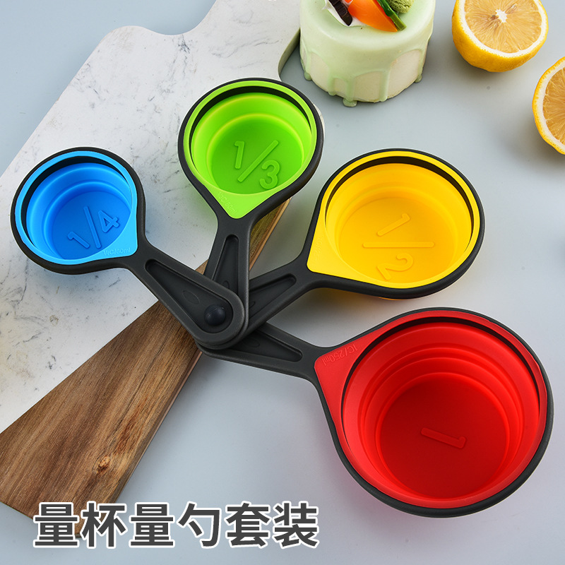 クロスボーダーシリコン折りたたみ計量カップ4点セット、伸縮式目盛り付き計量スプーン、コーヒー豆スプーン、キッチンベーキングツール