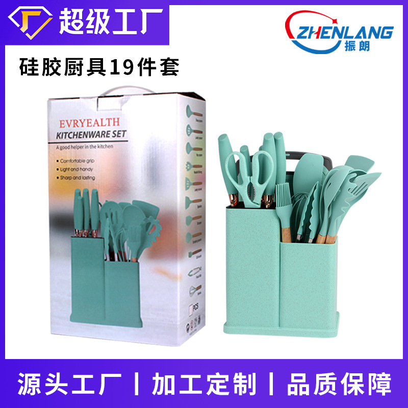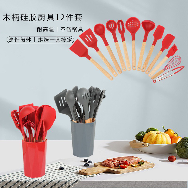 国境を越えた新しい木柄調理器具セットシリコン調理器具セット鍋調理シャベルスプーン13点セット収納桶付き