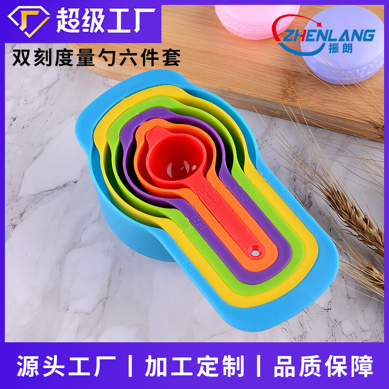 工場カスタム計量カップ計量スプーンセットプラスチック計量スプーン6点セットスケールベーキングツール付きカラー計量スプーン