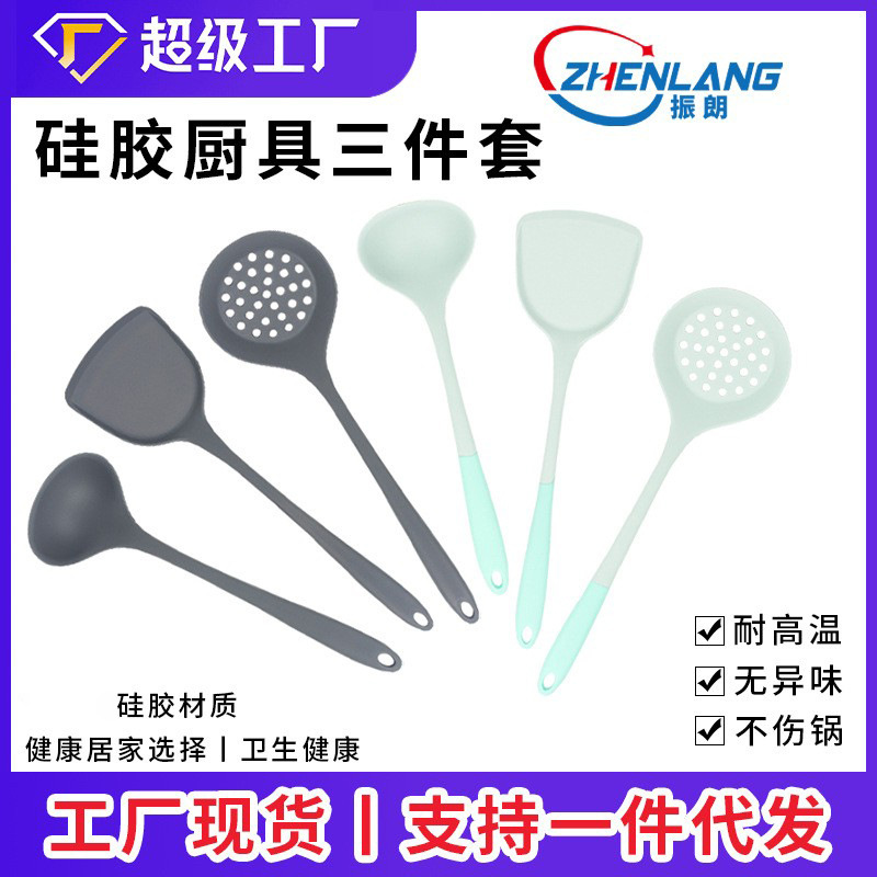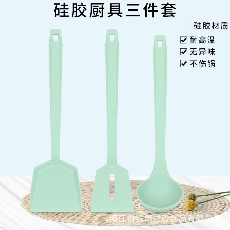 クロスボーダー韓国版シリカゲルシャベル全包一体シリカゲルシャベル耐高温調理シャベルスプーン3点セット工場現物