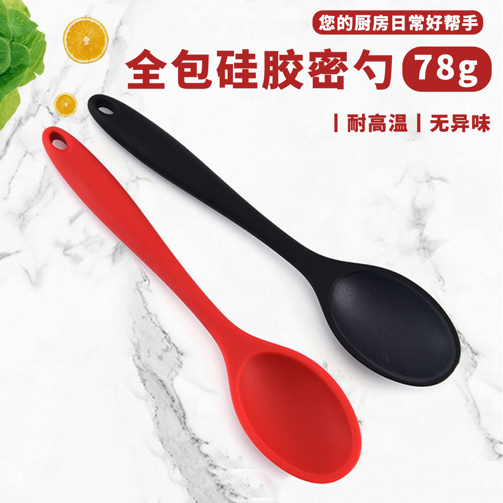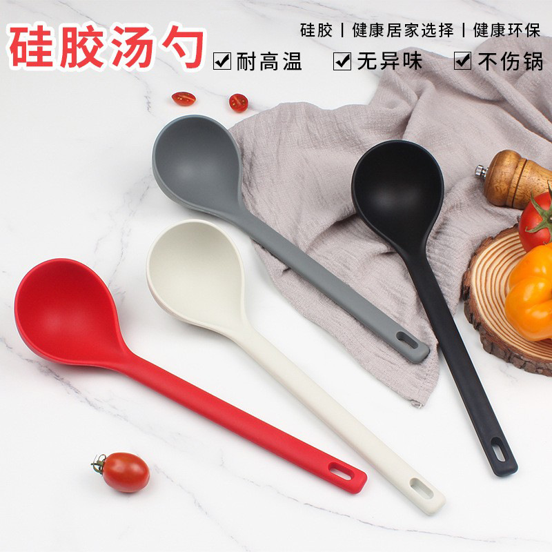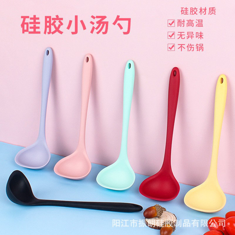 国境を越えたシリコン製スープスプーン、一体型、小型、シリコン製スープスプーン、調理器具、高温耐性、調理用スプーン、サラダ用スプーン