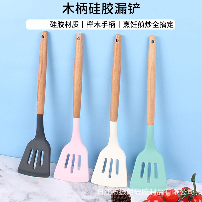 現物のシリカゲルの調理器具の木の柄のシリカゲルのシャベルのステーキのシャベルは鍋の調理のシャベルの台所の卵焼きのシャベルにくっつかないです。