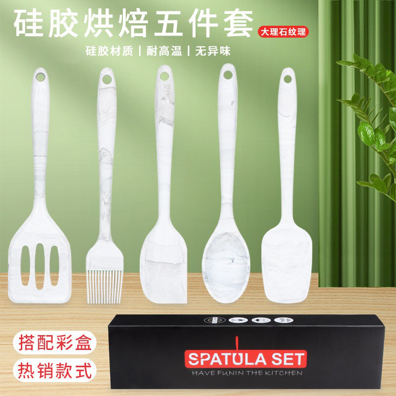 国境を越えた新型大理石紋シリカゲルスクレーパー焙煎5点セットのシャベル油ブラシサラダシャベルセット焙煎ツール