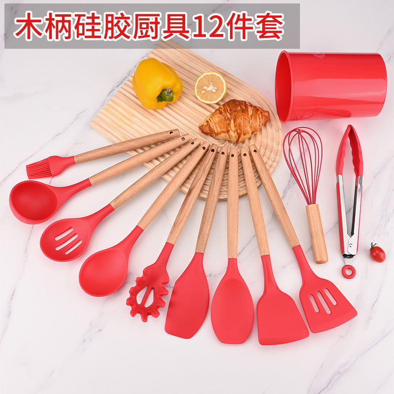 調理不粘着鍋収納桶入れ木柄シリカゲル調理器具12点セットシリカゲル調理器具11点セット現物